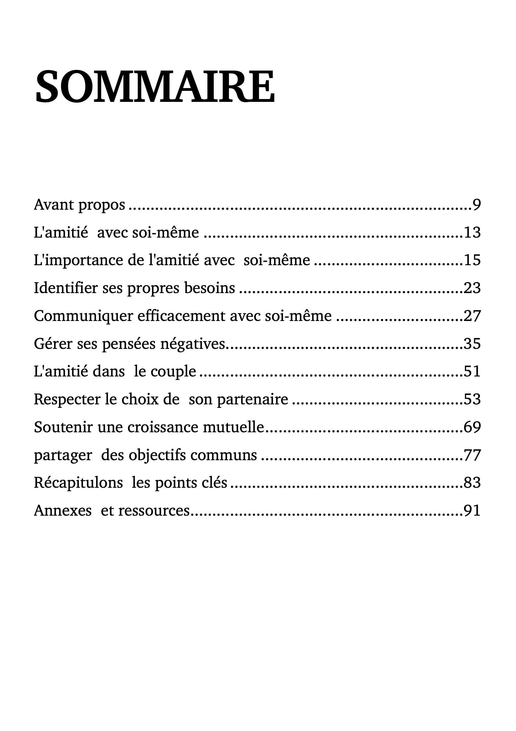 Chaque chapitre est accompagné d’exercices pratiques, à réaliser seul puis en duo. Ces exercices te guideront pas à pas, t’aidant à renforcer ton amitié avec toi-même avant de la transmettre à l’autre.
